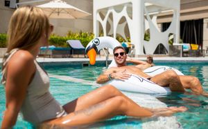 With 356 guest rooms including 76 suites, check in, in the V Hub on the seventh floor with enticing Dubai Canal views and ensconce yourself in our signature round-bedded suites on its extravagant with either Dubai Water Canal, Sheikh Zayed Road or pool views. Party it up at V Hotel Dubai’s signature Penthouse, located on the top floor with breathtaking views of the Dubai Water Canal with a DJ area, stage to showcase the groovy moves, private Jacuzzi to let loose and much more. Dance in the clouds in V Hotel Dubai’s Sky Villa, the perfect two-level runway is the perfect party destination for milestone celebrations.
