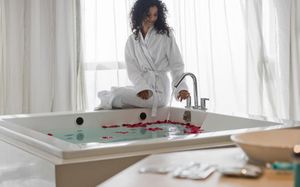 Туалетная бумага Полотенца Биде Ванна или душ Тапочки Собственная ванная комната Туалет Бесплатные туалетно-косметические принадлежности Халат Фен Ванна Душ