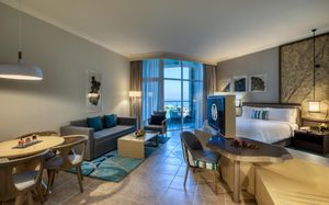 Этот пляжный курорт, расположенный между горами Хаджар и Индийским океаном, предлагает роскошные спа-процедуры и освещенные спортивные площадки. В отеле предлагаются номера для некурящих с балконом с панорамным видом. Все номера были отремонтированы и выходят на балкон или террасу с видом на океан или сад. Кроме того, каждый номер оснащен высококачественным постельным бельем, хорошо укомплектованным мини-баром и бесплатными принадлежностями для чая/кофе. Гости курортного отеля Fujairah Rotana могут отдохнуть на частном пляже или освежиться в бассейне с регулируемой температурой. Маленькие гости отеля Fujairah Rotana могут посетить детский клуб отеля. Также имеется отдельный детский бассейн. В ресторане Mozaique подают разнообразные блюда интернациональной кухни. Кроме того, по вечерам здесь регулярно устраивают тематические ужины. Известные коктейли, разнообразные сорта пива и кубинские сигары можно заказать в баре Muda.