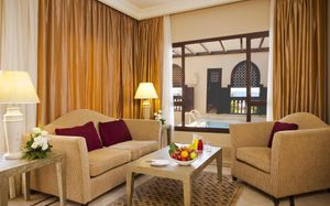 Этот 5-звездочный курортный отель, оформленный в марокканском стиле, расположен между берегом Индийского океана и предгорьями Оманских гор. К услугам гостей роскошные номера с собственным балконом. В отеле имеется спа-салон, дайвинг-центр, открытый и крытый бассейны, а также теннисные корты.