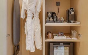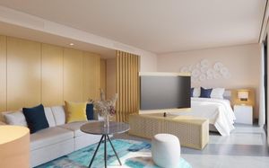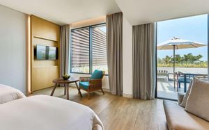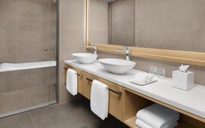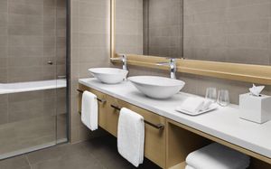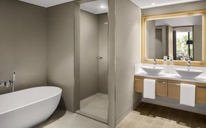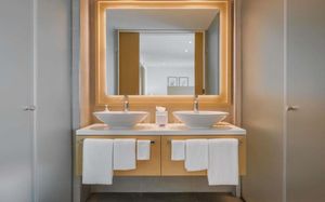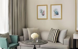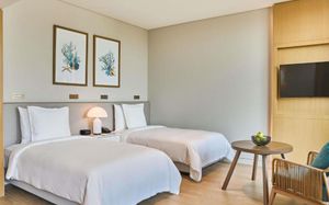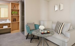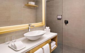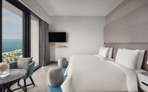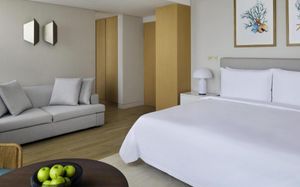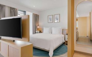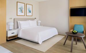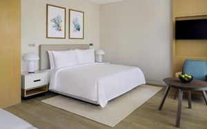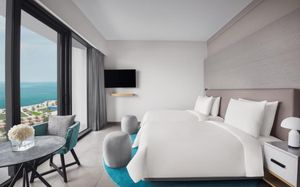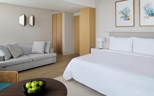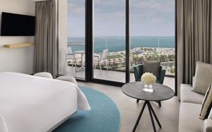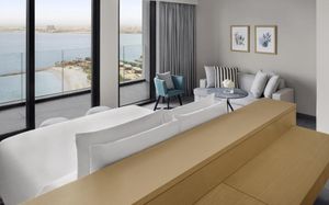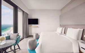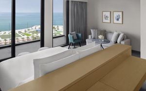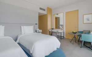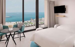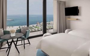 В номерах в Mövenpick Resort Al Marjan Island установлен кондиционер, телевизор с плоским экраном и сейф. Среди прочих удобств — письменный стол, чайник и мини-бар, а также собственная ванная комната с душем. В собственной ванной комнате есть бесплатные туалетно-косметические принадлежности. Гостям Mövenpick Resort Al Marjan Island предоставляются постельное белье и полотенца.