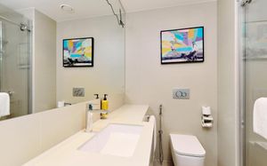 В номерах Rove Al Marjan Island установлен кондиционер, сейф и телевизор с плоским экраном. Среди прочих удобств — письменный стол, чайник и мини-бар, а также собственная ванная комната с душем. В собственной ванной комнате есть бесплатные туалетно-косметические принадлежности. Гостям Rove Al Marjan Island предоставляются постельное белье и полотенца.