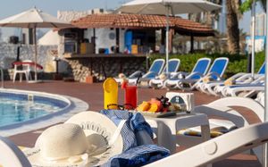Прекрасный отель! А за свою сумму вообще шикарный! Завтраки проходят в соседнем отеле Holiday International (отличный шведский стол). Оказывается владелец у данный отелей один, поэтому часто отели выручают друг друга. Сами отели находятся в 2-х минутах ходьбы друг от друга. На самом деле, если вы летите семьей и хотите спокойного отдыха, то езжайте в ходидэй. Если вы пара без детей, либо компания подруг- то выбор следует отдать Марбелле. На Марбелле тихо, спокойно, все взрослые и не шумные люди) 90% отдыхающих местные арабы. Приезжают на виллы с семьями. Менеджер Ева, всегда была с нами на связи, даже в свой выходной! Спасибо ей огромное