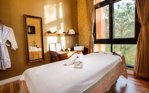 Offering views stretching across forests and lakes, Dalat Edensee Lake Resort & Spa provides luxurious 5-star accommodation with free Wi-Fi and a private hot tub. Golf simulators, a cinema and cigar lounge are available. Boasting private balconies with scenic views, elegant rooms have a flat-screen TV and comfortable arm chair. Spacious bathrooms have a bathtub, hairdryer and bathrobes. Dalat Edensee Lake Resort is 10 km from downtown Dalat and 30 km from Dalat Airport. Airport transfer service and free parking are available. Guests can relax in the library or enjoy a stroll in the resort's gardens. Other amenities include bicycle rentals, billiard tables and table soccer. A range of Vietnamese, Asian and International dishes can be enjoyed at the restaurant. The room service is available from 9.00am till 9.00pm