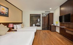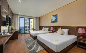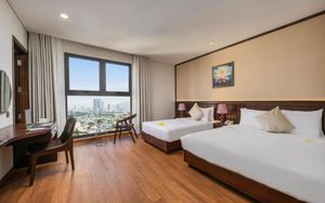 Golden Lotus Hotel Da Nang - Rooftop Bar Sea View — это отель, расположенный в городе Дананг. К услугам гостей бесплатные велосипеды, открытый бассейн, фитнес-центр и общий лаундж. В числе прочих удобств — ресторан, бесплатный трансфер и доставка еды и напитков, а также бесплатный Wi-Fi на всей территории. К услугам гостей бар. В распоряжении гостей Golden Lotus Hotel Da Nang - Rooftop Bar Sea View — гостиная зона и собственная ванная комната с биде, бесплатными туалетно-косметическими принадлежностями и феном. Также среди удобств есть кондиционер, телевизор с плоским экраном со спутниковыми каналами и сейф. Помимо собственной ванной комнаты с душем и тапочками, в определенных номерах в Golden Lotus Hotel Da Nang - Rooftop Bar Sea View из окон открывается вид на город. Гостям Golden Lotus Hotel Da Nang - Rooftop Bar Sea View предоставляются постельное белье и полотенца. Гостям подают завтрак «шведский стол», континентальный завтрак или азиатский завтрак. К услугам гостей Golden Lotus Hotel Da Nang - Rooftop Bar Sea View — терраса для загара. Сотрудники стойки регистрации, говорящие как на английском, так и на вьетнамском, помогут гостям спланировать поездку. Golden Lotus Hotel Da Nang - Rooftop Bar Sea View располагается на расстоянии 200 м и 2,9 км соответственно от таких достопримечательностей, как Пляж Микхе и Мост влюбленных в Дананге. Международный аэропорт Дананг находится в 6 км.
