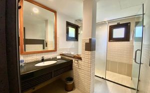 Заселились в этот отель почти случайно. Бронировали другой, а приехав туда обнаружили рядом шумную стройку и крыс. В турбо-режиме ночью нашли Sandy Beach. Все понравилось, кроме процесса заселения. У меня в аккаунт скидка от booking.com. И сотрудник на стойке регистрации(мужчина примерно 40-50 лет) сначала не увидел нашего бронирования, потом долго возмущался "почему дешево", потом возился 2 часа с заселением. В итоге отель-то классный, но первое впечатление не очень