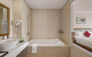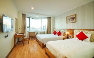 Situated opposite of My Khe Beach in Da Nang, Serene Danang Hotel has an outdoor pool and views of the sea, and guests can enjoy a meal at the restaurant or a drink at the bar. Each room is equipped with a flat-screen TV. You will find a kettle in the room. The rooms come with a private bathroom equipped with a bath or shower. For your comfort, you will find bath robes and slippers. Serene Danang Hotel features free WiFi access throughout the property. The hotel also offers car rental and tour services. It is 1.5 km from Monkey Mountain. Cham Museum is 3 km from Serene Danang Hotel, while Song Han Bridge / Han River Bridge is 5 km away. The Dragon Bridge is about a 5-minute drive away. The nearest airport is Da Nang International Airport, 6 km from the property.