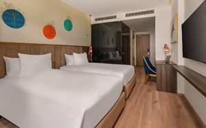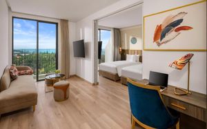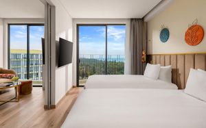 Поменяли номер на более комфортный, все очень понравилось. Чистота, персонал, пляж.