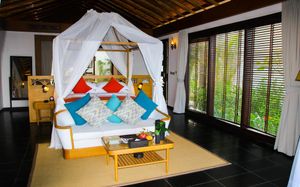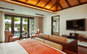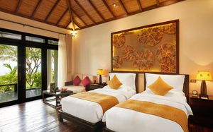 Situated along on a secluded bay, Amiana Resort Nha Trang boasts a private beach area and offers the Nha Trang seascape. A 2,500 m² natural seawater swimming pool and two freshwater infinity pools are featured for guests to go for a dip or simply lounge in the sun. Free WiFi can be accessed in all areas and free parking is possible at a nearby site. The resort is conveniently within 8 km to Nha Trang city centre, Nha Trang Train Station and the famous Dam Market. Nguyen Thien Thuat Street is 12 km away, while Cam Ranh International Airport is accessible with a 55-minute drive. Set within landscaped tropical gardens, spacious units at Amiana Resort Nha Trang are along the beach and air-conditioned. Fitted with tiled/parquet flooring, units are furnished with a work desk, a flat-screen cable TV, minibar and seating area. En suite bathroom in each unit is equipped with a hairdryer, shower and free toiletries. Car rental service with driver is available for guests to explore the area, or guests may approach the tour desk for arrangements of recreational activities and private excursions. Massage treatments and private mud bath with exclusive ocean view are available at its award-winning Amiana Spa. Amiana Resort Nha Trang operates a 24-hour front desk where multilingual staff can assist with luggage storage, currency exchange and concierge services. The in-house Bacaro restaurant serves fresh seafood, traditional Vietnamese and international cuisines throughout the day, while the bars serves up many choices of tropical cocktails and wines. "COMPLIMENTARY SERVICES AND ACTIVITIES FOR RESIDENT GUESTS - Daily Amiana’s Tea Hour. - Daily seasonal fruits in the room. - Welcome cold towel and welcome drink upon arrival. - Usage of scheduled resort activities and kid club activities. - Usage of Swimming float and life jacket at Lagoon Beach. - A bottle of mineral water per adult per day. - Free ice at the public counter. - Complimentary minibar upon arrival in the room. - One complimentary ice cream for children under 12 years old. *The number of activities may change according to the regulations & can be changed without prior notice.