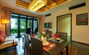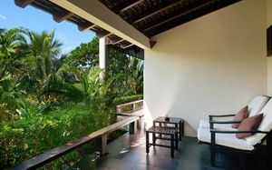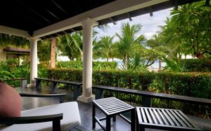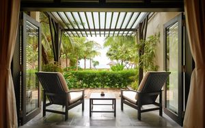 Быстрое оформление. Очень красивый прием на ресепшнс веранды и видом на умиротворяющий бассейн. Весь багаж доставили на багги. В номере все супер: ванна и душ на воздухе, много удобной мебели, чисто. Но огромная кровать - это целая гениальная вселенная. Чистый мягкий белоснежный хлопок постель. Шикарный вид из номера на пляж и бухту. Уборка ежедневная. Фрукты и вода каждый день новые. Чайная церемония в номере. Удобное очень патио - супер релакс. За 10 дней на завтраке всегда можно удивиться. Завтрак впечатляет обилием ассортимента еды. И континентальной европейской и традиционной. Бассейны с подогревом порадовали. В номере и шапки от солнца и вьетнамки! Территория отеля и пляжа идеальная Растения ухоженные. На такси за смешные деньги можно доехать до центра. И 45-50 мин от аэропорта.