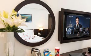 В отеле гостей ожидает размещение в стильных и светлых номерах с большими окнами. В числе удобств – кондиционер, удобная гостиная зона и собственная ванная комната с биде и феном. Из номеров открывается панорамный вид на городской пейзаж.