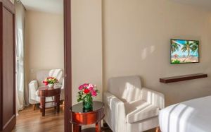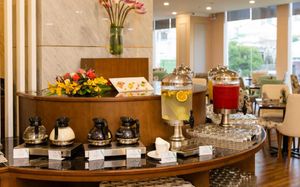 В отеле есть 2 бара, 1 кафе, 1 ресторан, 2 конференц-зала, детский клуб, спа, тренажерный зал и открытый пейзажный бассейн.