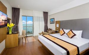 Хороший отель, немного староват по дизайну, но сервис на уровне! По приезду был предложен прохладительный напиток, в номере были приветственные фрукты! За это большой плюс отелю! Отель на второй линии, номер делюкс с частичным видом на море! Завтраки обильные, выбор есть, фрукты 4-5 видов, выпечка 5 видов, даже был сыр, что не часто бывает в Азии! Не Турция, но для Азии отличные! Менеджер на рецепшене русская девушка Карина (если не ошибаюсь) работает отлично, уравновешенная, отвечает и решает все вопросы, было легко! Из вьетнамского персонала хочу отметить девушку по имени Tram, всегда приходит на помощь, интересуется, что еще может сделать! Вообще весь персонал сработал отлично! Приветливые, помогающие и т.д. Полотенца меняют каждый день и пополняют запас воды, кофе и чая! На пляж выдают полотенца! Есть спортзал, посещала каждое утро, людей либо нет либо мало и те сами вьетнамцы! Никто никому не мешает! Есть бассейн…достаточно большой…чистый!