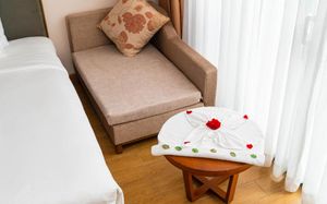 Единственный минус. При бронировании отеля заранее в описании была информация про бесплатные лежаки от отеля на пляже! Но когда мы прилетели, то эту опцию отменили, это грустно! Бал снижать не буду, но было чувство разочарования. Лежак можно было оплатить в отеле- 100 тысяч донгов, считаю что для постояльцев отеля у которого есть кусок своего пляжа это дорого! Пусть будут платно, но дешевле! У многих отелей свои лежаки доступны для проживающих в отеле!