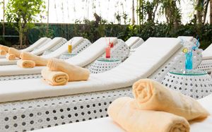 Бассейн 1 — открытый Бассейн 2 — открытый Раздевалка со шкафчиками в фитнес-центре / спа-салоне Личный тренер Занятия по фитнесу Фитнес Массаж всего тела Массаж рук Массаж головы Массаж для пар Массаж ног Массаж шеи Массаж спины Пакеты услуг спа/велнесс Ванночка для ног Парная Спа-процедуры Обертывание Пилинг для тела Уход за телом Уход за волосами Уход за лицом Косметические услуги Зонты от солнца Шезлонги/пляжные кресла Гидромассажная ванна/джакузи Массаж Спа и оздоровительный центр Фитнес-центр Сауна