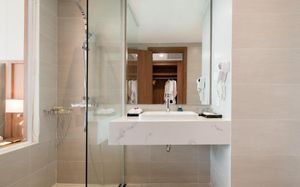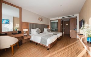 В дополнение к услугам размещения, отель также предлагает полный спектр современных удобств, таких как пейзажный бассейн с баром у бассейна, многофункциональный тренажерный зал, массажный салон с современной сауной и паровой баней, а также частный пляж, ресторан с романтическим видом на море, где подают завтрак "шведский стол". Роскошный евразийский банкетный зал и конференц-залы, оснащенные самой современной звуковой и световой системой, несомненно, удовлетворят вас.