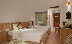 Located in Nha Trang, a 2-minute walk from the Beach, Green World Hotel offers rooms with free private parking, a semi-outdoor pool and a fitness center. Each room at this 4-star hotel has a view of the ocean or city. The property provides a 24-hour front desk, airport pick-up service, and free Wi-Fi in all rooms. The hotel will provide air-conditioned rooms with a work desk, kettle, minibar, safe, flat-screen TV and private bathroom with shower. Green World Hotel is 6.2 km from Vinprearl Port and 6.4 km from New Cruise Port. Cam Ranh International Airport is 35 km away from the hotel.