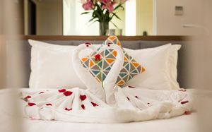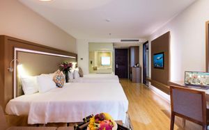 В отеле 204 номера международного стандарта, оформленных в современном, роскошном и удобном стиле. Все номера площадью от 28 до 52 кв.м оснащены современными системами кондиционирования воздуха, водонагревателями, кабельным телевидением, высокоскоростным доступом в Интернет, телефоном с международной линией, мини-баром, пожарной сигнализацией... Все идеально и абсолютно безопасно.