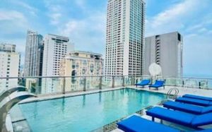 Неплохой отель в самом центре города на второй линии. Пляж и море совсем рядом. Много кафе и ресторанов вокруг. Великолепный вид из номера. Захватывает и море и городской пейзаж с высотными красивыми зданиями. Окна в пол, это супер. Неплохой завтрак. Шведский стол с неплохим выбором и готовят разные вариации яиц и суп с лапшой. Всё есть, чтобы хорошо и сытно позавтракать. Убираются каждый день. Только вот пол всегда грязный. Видимо его не пылесосят и не моют.