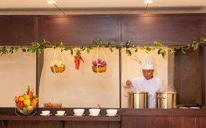 Напротив отеля "местный ресторан" там вкусно и недорого. Рядом с "рестораном" на улице продают фрукты-там самые вкусные смузи, с шикарной ценой!