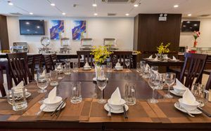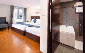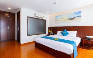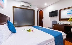 Navy Hotel Nha Trang — это отель в городе Нячанг, в 600 м от такой достопримечательности, как Пляж Нячанга. Среди удобств — открытый бассейн, общий лаундж, ресторан и бесплатная частная парковка. В распоряжении гостей отеля с 4 звездами — доставка еды и напитков и услуги консьержа. Гости могут обратиться к сотрудникам круглосуточной стойки регистрации, воспользоваться трансфером от/до аэропорта или детским клубом, а также подключиться к бесплатному Wi-Fi. В номерах Navy Hotel Nha Trang установлен кондиционер, сейф и телевизор с плоским экраном. Среди прочих удобств — письменный стол, чайник, холодильник и мини-бар, а также собственная ванная комната с биде. Помимо собственной ванной комнаты с душем и бесплатными туалетно-косметическими принадлежностями, в определенных номерах в Navy Hotel Nha Trang из окон открывается вид на город. Гостям Navy Hotel Nha Trang предоставляются постельное белье и полотенца. Гостям Navy Hotel Nha Trang предоставляется азиатский завтрак. К услугам гостей Navy Hotel Nha Trang — терраса для загара. Рядом с Navy Hotel Nha Trang находятся такие популярные достопримечательности, как Башня Лотос, Торговый центр Nha Trang Centre и Кафедральный собор Нячанга. Международный аэропорт Камрань находится в 34 км.