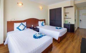Отель Nha Trang Lodge удобно расположен в центре пляжной улицы Тран Фу, всего в нескольких шагах от таких известных достопримечательностей, как башня Трам Хуонг, площадь 2-го апреля, ночной рынок и торговые центры A&B и Vincom Plaza. До пляжа — всего 30 метров. К услугам гостей всех номеров балкон с видом на море и океан. В оформлении номеров использованы деревянные элементы отделки. Профессиональный и отзывчивый персонал всегда готов позаботиться о гостях. Отель — отличное место для размещения при посещении прекрасного прибрежного города Нячанг.