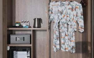 Бассейн холодный Лампа в коридоре зачем-то включается при движении Не понравилось, что нет закрытых шкафов, в столе и прикроватных тумбочках вместо полок мулляжи Зубные щётки очень некачественные