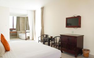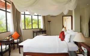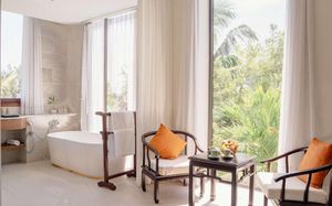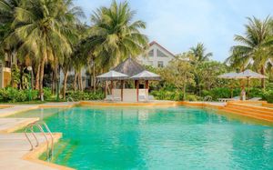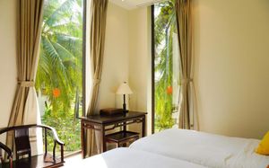 Отель просто супер. Если ищите спокойный пляжный отдых, то он самое то. В отеле мало людей. Много было свободных лежаков. Сотрудники отеля следят за тем, чтобы не было посторонних людей на территории отеля. Еда вкусная, но цены выше среднего , если сравнивать с ценами в Нячанге. Отель предоставляет один раз бесплатный трансфер в город. Номера чистые, сотрудники отзывчивые. Все объяснят , покажут, расскажут. Рядом есть кафе с местной кухней, где подают бесплатные фрукты , овощи , смузи. Инфраструктура рядом с отелем не развита. Никаких нареканий по поводу организационных моментов нет. Гиды всегда на связи. Деньги можно поменять прям в отеле или у своего отельного гида. Отдых удался на 5+