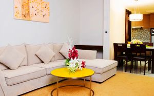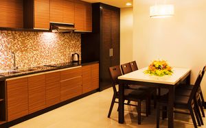 Душ, Мини-бар (платно), Сейф (бесплатно), Телевизор, Телефон, Фен, Кондиционер (бесплатно), Холодильник, Ванна, Чайник, Утюг, гладильная доска, Халаты/Тапочки, Кухонный уголок, Интернет в номере (бесплатно)