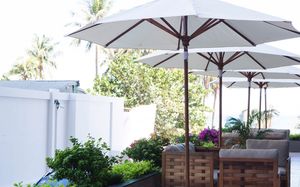 Шезлонги и зонтики на пляже (бесплатно), Частный пляж, Песчаный