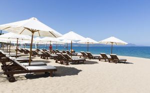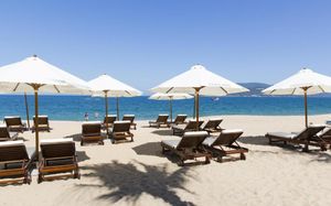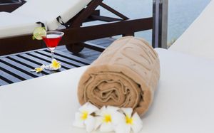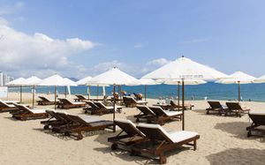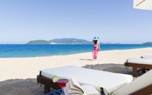 Лежаки на пляже от отеля платные по 150 000 донгов. Полотенца выдают только по талону с ресепшена. На 4-х выдавали только 2 полотенца.