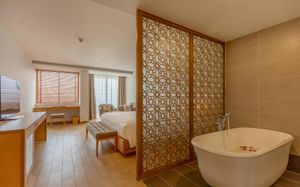 Selectum Noa Resort Cam Ranh — это курортный отель в городе Камрань, в 0 м от такой достопримечательности, как Пляж Байдай. Среди удобств — бесплатные велосипеды, открытый бассейн, фитнес-центр и бесплатная частная парковка. Среди удобств есть частный пляж и снаряжение для водных видов спорта, а также сад и терраса. В распоряжении гостей детский клуб, доставка еды и напитков и услуга обмена валют. В распоряжении гостей Selectum Noa Resort Cam Ranh — гостиная зона и собственная ванная комната с душем, бесплатными туалетно-косметическими принадлежностями и феном. Также среди удобств есть кондиционер, телевизор с плоским экраном с кабельными каналами и сейф. В собственной ванной комнате есть тапочки. Гостям Selectum Noa Resort Cam Ranh предоставляются постельное белье и полотенца. Гостям предлагается завтрак «шведский стол», континентальный завтрак или азиатский завтрак. К услугам гостей Selectum Noa Resort Cam Ranh — детская игровая площадка. На территории Selectum Noa Resort Cam Ranh можно поиграть в бильярд, в настольный теннис и в дартс, а в окрестностях популярно заниматься пешими прогулками и велосипедными прогулками. Сотрудники стойки регистрации, которые говорят на английском, на корейском, на русском и на вьетнамском, предоставят гостям информацию о регионе. Selectum Noa Resort Cam Ranh располагается на расстоянии 26 км и 33 км соответственно от таких достопримечательностей, как 100 Egg Mud Bath и Музей Александра Ерсина. Международный аэропорт Камрань находится в 3 км.