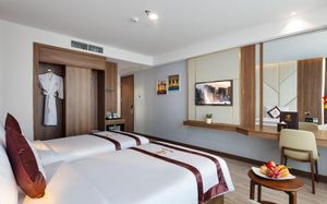 Senia Hotel Nha Trang — это отель в городе Нячанг, в 1,7 км от такой достопримечательности, как Пляж Хон-Чонг. Среди удобств — открытый бассейн, фитнес-центр, ресторан и бесплатная частная парковка. В распоряжении гостей отеля с 4 звездами — экскурсионное бюро и место для хранения багажа. Гости могут обратиться к сотрудникам круглосуточной стойки регистрации, воспользоваться трансфером от/до аэропорта или доставкой еды и напитков, а также подключиться к бесплатному Wi-Fi.