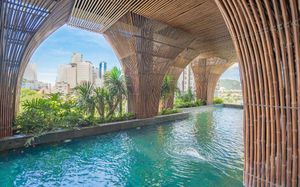 Кроме того, отель предлагает разнообразные услуги, включая уроки йоги и медитации, ресторан традиционной вьетнамской кухни, сад Babylon с панорамным видом на город, два больших многофункциональных бассейна, спа-центр Jjim Ji Bang в стандартном корейском стиле, стильный бар у бассейна и кофейный салон.