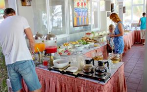Расписание работы основного ресторана: Champa: завтрак с 07:00-09:30 (шведский стол или по меню), обед с 11:00-15:00, закуски с 15:00-17:00, ужин с 18:00-22:00