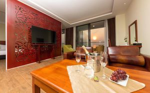 Все номера оформлены в естественных белых и темно-коричневых тонах. Среди удобств кондиционер, шкаф для одежды и телевизор с плоским экраном и кабельными каналами. В некоторых номерах есть терраса или балкон. Кроме того, в каждом номере имеется собственная ванная комната с биде, душем и феном. Предоставляются халаты, тапочки и бесплатные туалетно-косметические принадлежности.