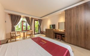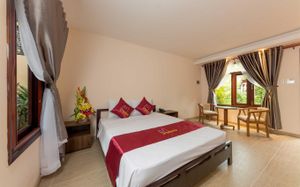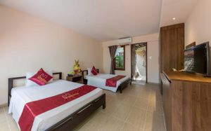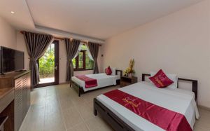 Отель расположен в г. Онг Ланг. Отель открыт в 2018 году, последняя реновация проводилась в 2023 году. Состоит из 26 бунгало. В отеле нет оборудованных номеров для гостей с ограниченными физическими возможностями. Пляж Общественный пляж в 1,5 км от отеля. Пляжные полотенца, зонтики и шезлонги не предоставляются. Инфраструктура открытый бассейн (60 кв. м) основной ресторан (азиатская и европейская кухни) Важно депозит взимается - ксерокопия загранпаспорта размещение с домашними животными запрещено курение на территории отеля разрешено Номера Family bungalow Номер: 40 кв. м, спальня, двуспальная кровать, диван, ванная комната, душ, терраса, вид на сад. Доп. место: не предоставляется. Garden view bungalow - twin Номер: 30 кв. м, спальня, 2 односпальные кровати, ванная комната, душ, терраса, вид на сад. Доп. место: не предоставляется. Garden view bungalow - double Номер: 30 кв. м, спальня, двуспальная кровать, ванная комната, душ, терраса, вид на сад. Vip bungalow - double Номер: 30 кв. м, спальня, двуспальная кровать, ванная комната, душ, терраса, вид на сад. Pool view bungalow - double Номер: 30 кв. м, спальня, двуспальная кровать, ванная комната, душ, терраса, вид на бассейн. Pool view bungalow - twin Номер: 30 кв. м, спальня, 2 односпальные кровати, ванная комната, душ, терраса, вид на бассейн. Доп. место: не предоставляется. В номере представлено: тапочки банные принадлежности фен кондиционер ТВ мини-бар (платно) набор для приготовления чая/кофе мини-холодильник питьевая вода Wi-Fi (бесплатно) сейф (бесплатно) доп. место - раскладная кровать (100х200) Доступно обслуживание номера (ежедневно). Уборка номера: ежедневно. Смена белья: ежедневно. Концепция питания BB - завтрак Услуги Спорт и развлечения тренажерный зал Прочие услуги Wi-Fi на территории (бесплатно) прачечная (платно) парковка велосипеда/автомобиля аренда мотоцикла камера хранения