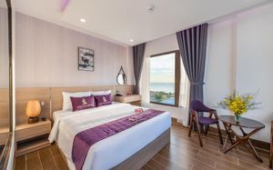 Локация 7 минут прогулочным шагом до моря, вид из окна на море отличный. Неплохие номера, уборка и замена полотенец ежедневно. Завтрак скромный, но голодным не останешься (жарят яичницу, суп фо, несколько блюд горячих, два салата, фрукты). Соотношение локации и цены в пользу туристов. Мы сознательно впервые выбрали отель-тройку, чтобы увеличить количество дней до 14 и не выйти за рамки бюджета. Все получилось!