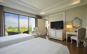 Хороший отель, большая территория. Есть аренда велосипеда. Каждый день по 1 часу бесплатно. Так же на пляже есть лодки, по 30 минут в день так же бесплатно. Пляж хороший, лежаки есть, но когда отель полностью заселен их не хватает. Но можно брать матрасы и никаких проблем. Чистота. Есть так же тук тук который возит вас от отеля до Венеции. У нас был хороший просторный двухкомнатный номер, уборка номера каждый день, кофе, чай и вода бесплатно. Мини бар платный. Завтраки неплохие. Персонал вежливый, была одна девушка разговаривающая на русском языке. Так же отель взымает депозит в размере 200$.