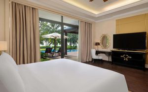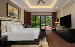 При курортном отеле Radisson Blu Resort Phu Quoc с собственным пляжем работает казино. От курортного отеля можно добраться до зоопарка «Сафари» и гольф-поля менее чем за 5 минут. Курортный отель окружен тропическим садом. К услугам гостей терраса. Предоставляется бесплатный Wi-Fi. Открыт бесплатный пункт аренды велосипедов. Кроме того, можно бесплатно заниматься сноркелингом и каякингом. В номерах есть собственный балкон, собственная ванная комната и телевизор с плоским экраном. В числе стандартных удобств — принадлежности для чая/кофе. Из окон открывается вид на сад или открытый бассейн. На виллах рядом с пляжем имеется собственный бассейн. Ежедневно сервируют завтрак «шведский стол». В течение всего дня в ресторане Avenue подают разнообразные блюда вьетнамской и интернациональной кухни. Гости могут посетить лобби-бар Annex и бар у бассейна Azure, где предлагают освежающие напитки и фирменные коктейли. Дорога от курортного отеля до парка развлечений Vin Wonder Phu Quoc занимает 5 минут. Расстояние до международного аэропорта Фукуок составляет 23 км. Для гостей организуют бесплатный трансфер по расписанию от/до аэропорта (настоятельно рекомендуется бронировать за 24 часа). После этого времени бронирование мест в автобусе будет осуществляться при наличии возможности. Пожалуйста, заранее сообщите администрации курортного отеля Radisson Blu Resort Phu Quoc ожидаемое время прибытия. Укажите информацию в поле для особых запросов при бронировании или свяжитесь с администрацией напрямую. Контактные данные указаны в подтверждении бронирования.